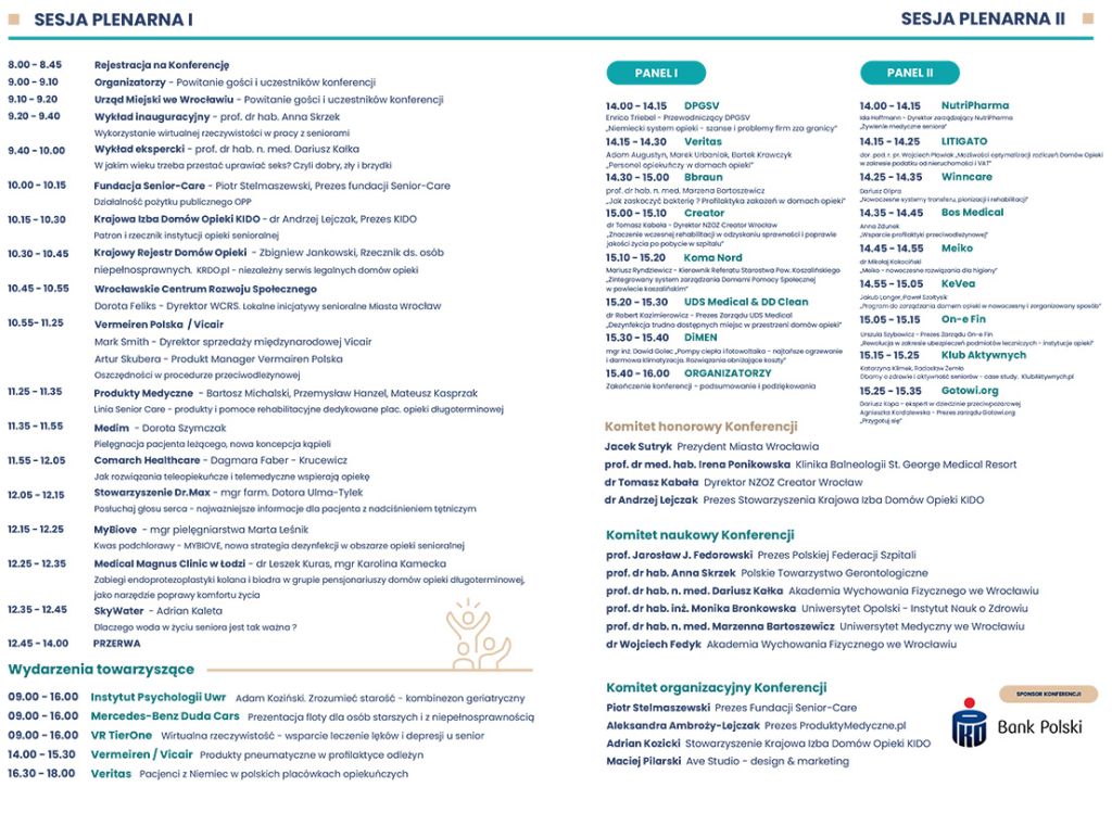 Konferencje Senior-Care to cykliczne wydarzenia o charakterze ogólnopolskim i regionalnym, realizowane w formule konferencyjno-edukacyjnej oraz szkoleniowo-warsztatowej. Są one dedykowane osobom , instytucjom oraz podmiotom związanym z opieką senioralną, ze szczególnym uwzględnieniem potrzeb placówek świadczących opiekę długoterminową – z terenu całego kraju. Współpracujące z Fundacją Senior-Care grono naukowców oraz ekspertów i praktyków, reprezentujących szeroko pojmowaną gerontologię i dziedziny pokrewne – dzieli się swoją wiedzą i doświadczeniem z uczestnikami konferencji i warsztatów. Dotychczas zostało zrealizowanych 16 tego typu projektów. Siedem Ogólnopolskich: Konferencja Senior-Care  w Trzebnicy 2019, Konferencja Senior-Care  w Gdańsku 2020 oraz Konferencja Senior-Care  w Ciechocinku 2021, Konferencja Senior-Care we Wrocławiu 2022, Konferencja Senior-Care w Poznaniu 2023, Gdańsk 2024 oraz Łódź 2025, a także dziewięć o charakterze regionalnym w Łodzi dwukrotnie, Brzegu Dolnym, w Krakowie, w Dźwirzynie, w Babicach Nowych, w Kowalu, w Szczyrku oraz ponownie w urokliwej Trzebnicy. We wszystkich tych wydarzeniach wzięło łącznie udział ponad 6 tysięcy osób – związanych naukowo i zawodowo z problematyką opieki senioralnej. Wszystkie tego typu wydarzenia – organizowane przez Fundację Senior-Care -posiadają rekomendację Krajowej Izby Domów Opieki KIDO (www.kido.org.pl) oraz są wspierane przez Krajowy Rejestr Domów Opieki KRDO (www.krdo.pl). Poniżej zamieszczamy relacje z Konferencji.